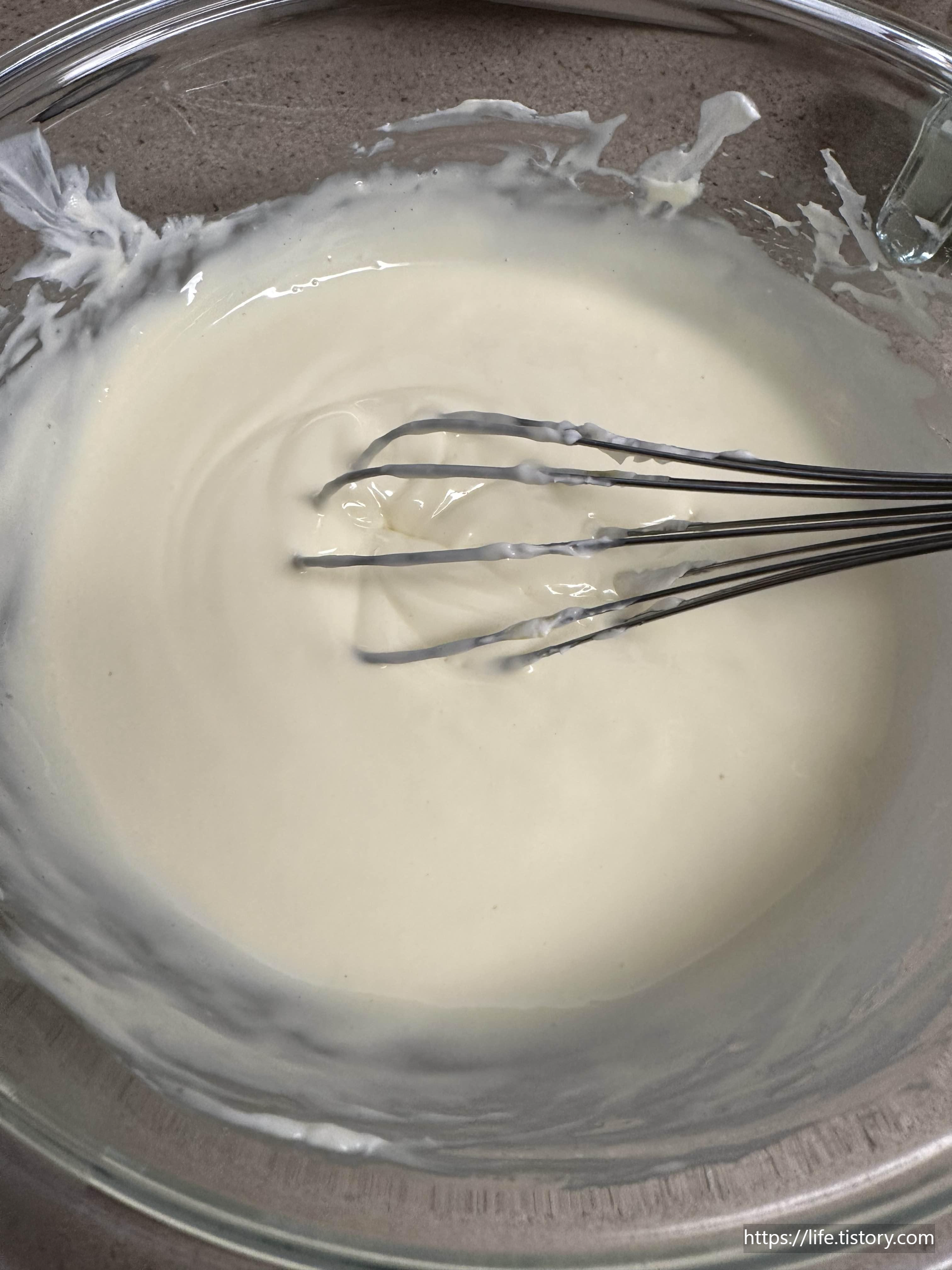- 생크림을 조금씩 넣으면서 잘 섞어준다.