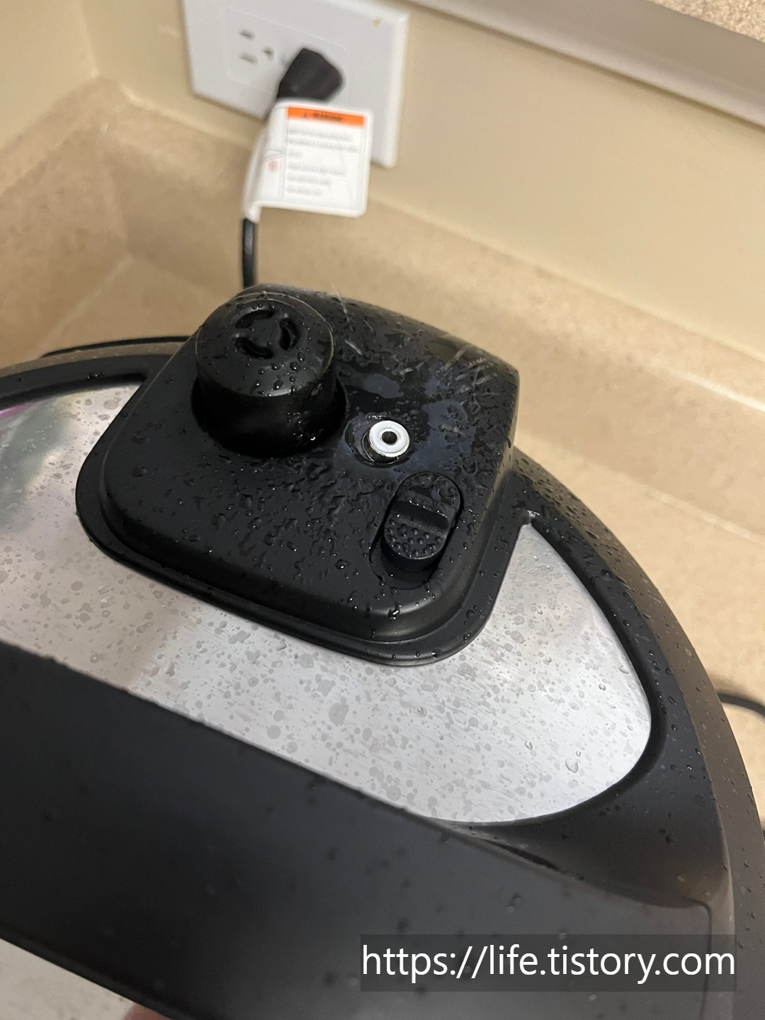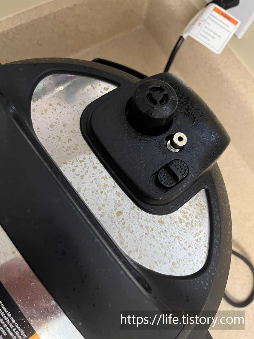 고기가 다 잠길 정도로 넣으면 김이 샐 때 난리가 날 수 있다.
