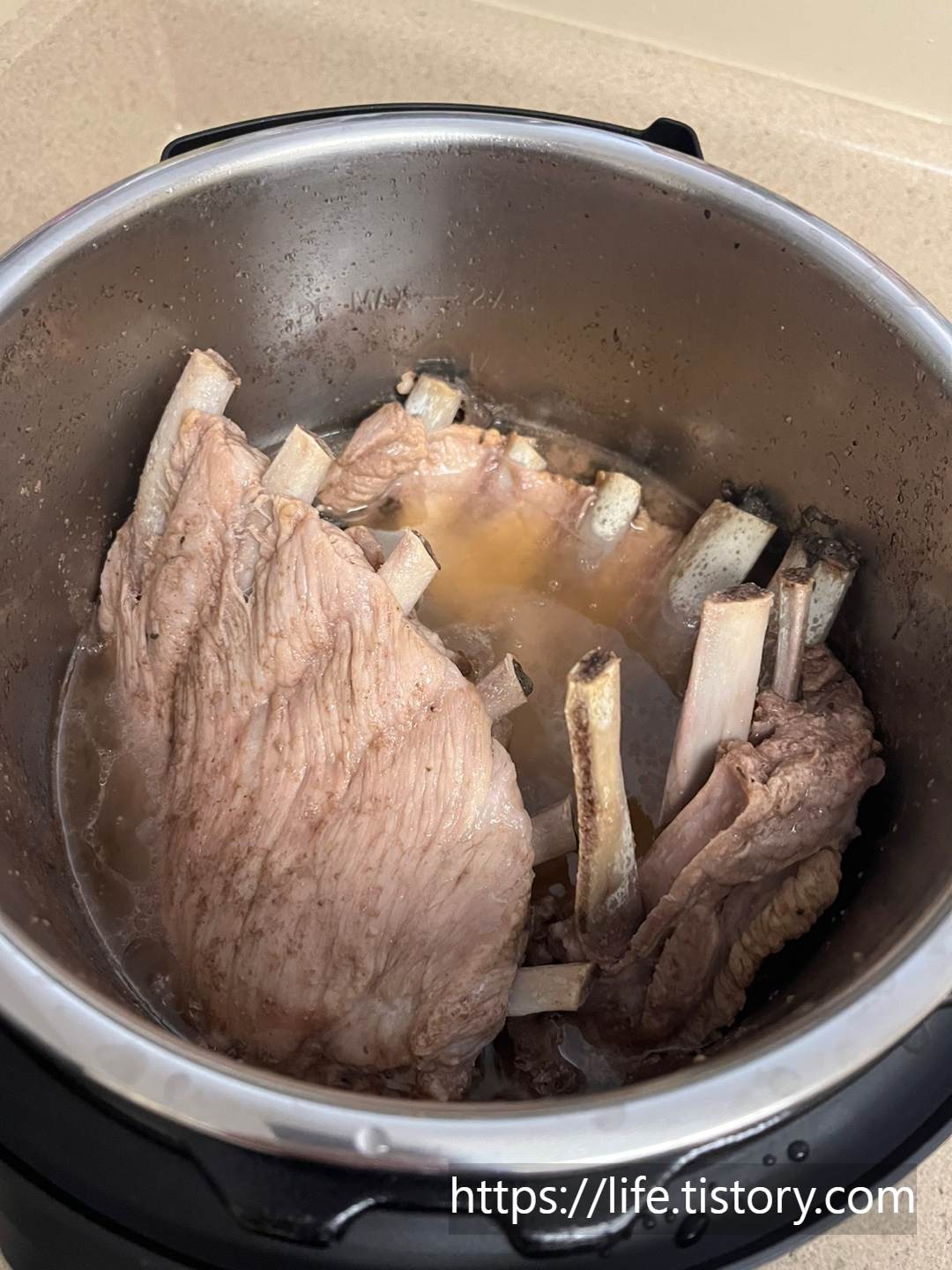 인스타팟을 이용하니 시간은 짧게 고기는 부드럽게 먹을 수 있었다.