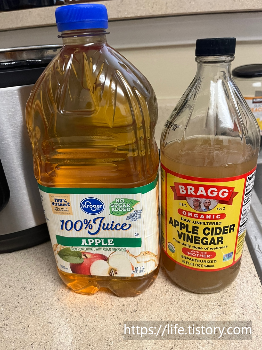 크로거에서 파는 사과주스와 사과식초를 사용했다.