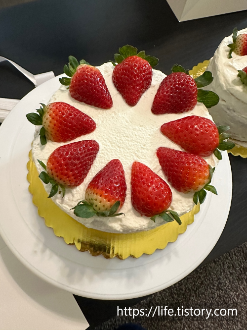 그 이후 새해가 다가오기 전에 또 한 번 딸기 케이크를 만들어서 지인에게 전달했다.