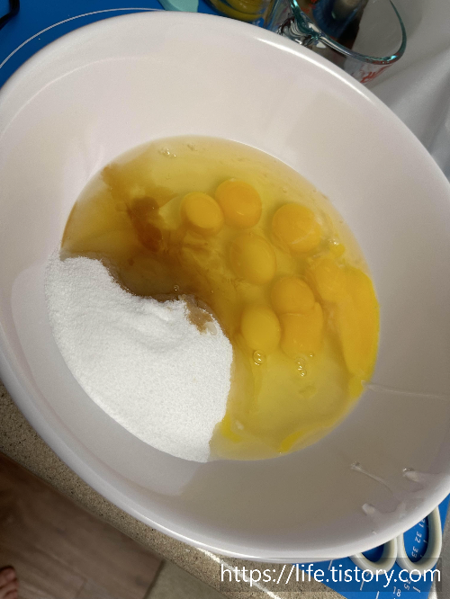 1. 흰자를 휘퍼로 머랭상태가 될 때까지 돌려준다.
