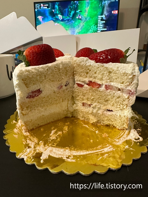 딸기 케이크는 아이싱 모양은 별로였지만 맛이 좋아서 성공이라고 생각이 들었다.