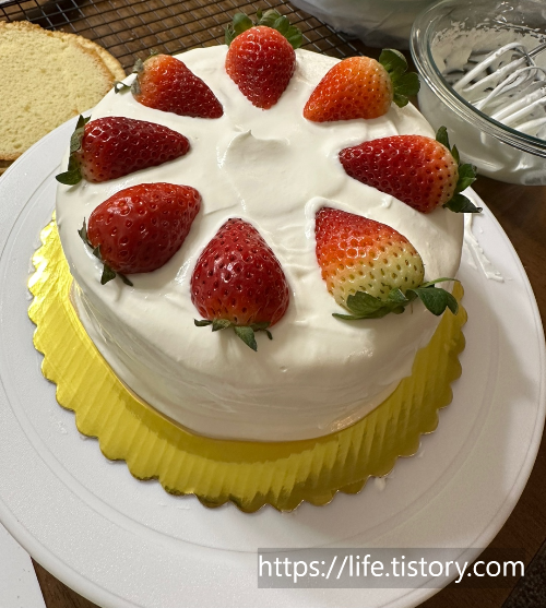 고구마케이크 제누와즈가 잘 만들어지자 자신감이 급 상승하면서 딸기 케이크도 열심히 만들기 시작했다.