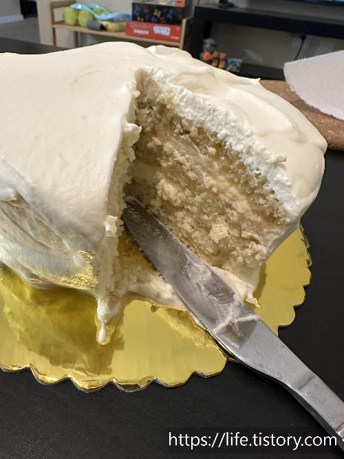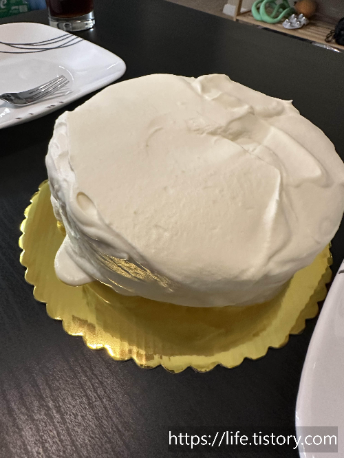 처음 우리 케이크를 연습했는데 지금생각해 보니 우리 케이크에 연습하다고 생크림이 더 많이 들어간 것 같다.
