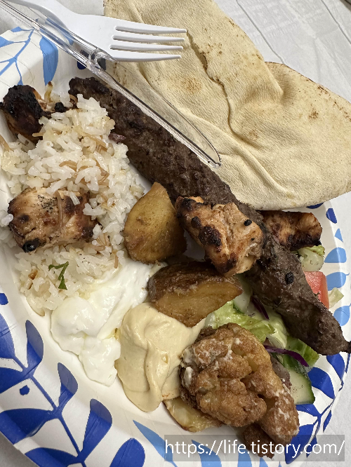 소고기가 있는지 몰랐는데 소고기는 훨씬 부드럽고 맛있었다. 양고기는 담백하고 퍽퍽한 맛이었다. 꼭 소스와 함께 먹어야 했다ㅎㅎ