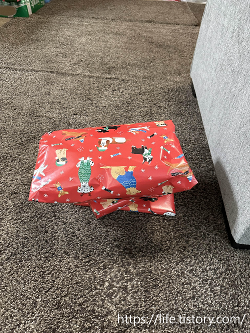 어렸을 때 포장을 많이 해봤었는데 나이 먹고 하려니 예쁘게 포장이 안 됐다.