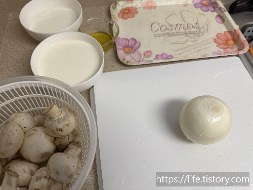 차들이 하나도 안 다니고 집에만 있으니 심심하던 차에 갑자기 양송이 수프가 먹고 싶어서 만들어봤습니다 ㅎㅎ