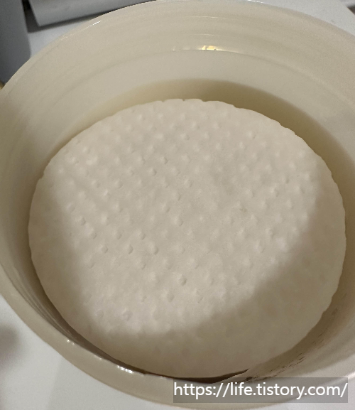 기존에 사용하던 웨라쥬와 비교해 봤을 때 패드가 훨씬 두꺼워요. 순면으로 겹겹이 쌓은 패드인가 봐요. 순면으로 되어있어서 그런지 잘 못 잡으면 찢어지는 걸 볼 수 있어요. 안 찢어지게 살살 잡고 닦으면 촉촉한 느낌을 받을 수 있더라고요.