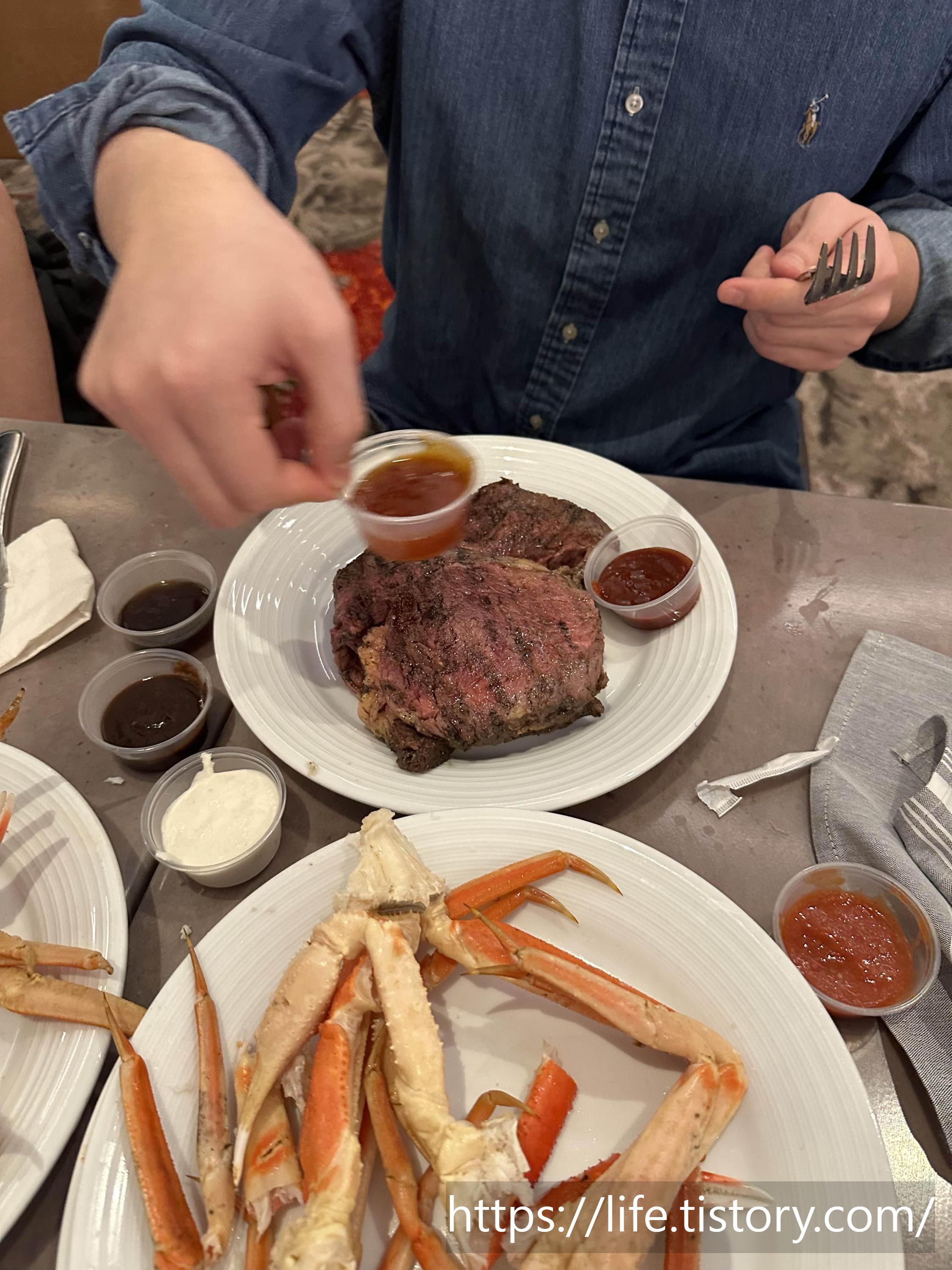 게다리 열심히 먹고 스테이크도 맛보고 스테이크도 질 좋은 고기인지 정말 맛있었다.
