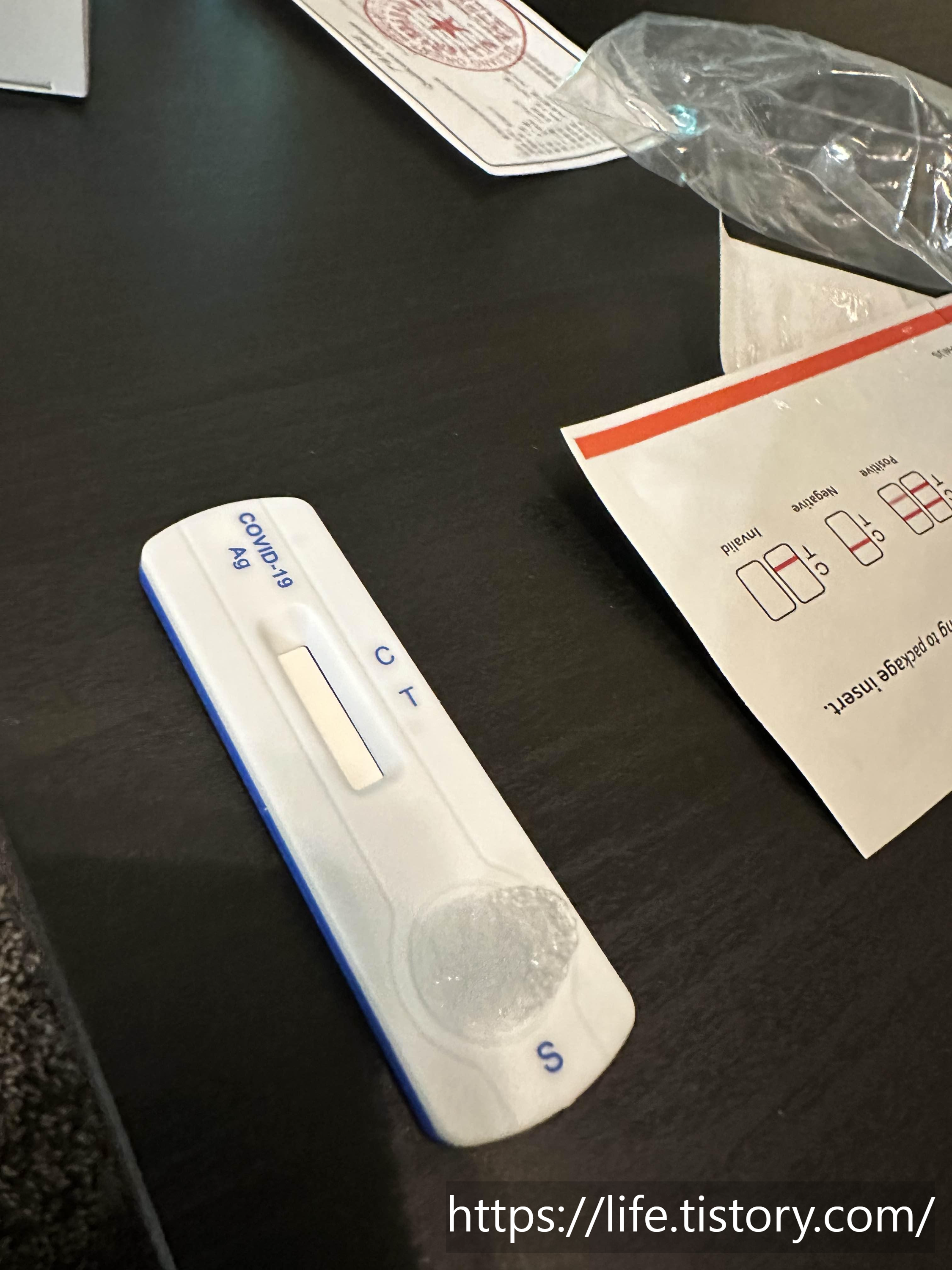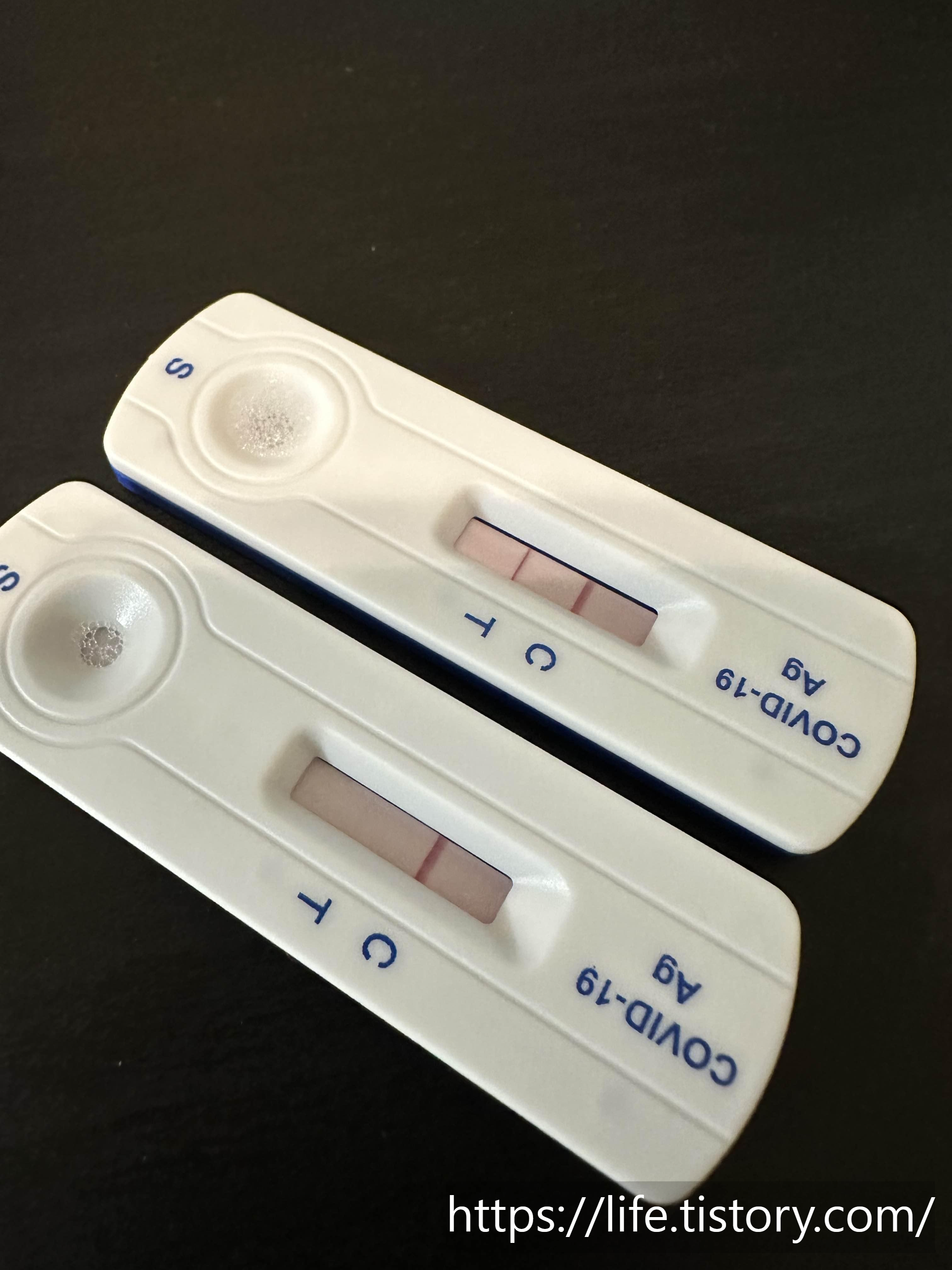 그 주 금요일도 약속이 있었기에 집에 있는 자가진단 키트로 검사를 해봤는데 키트에 문제가 있는지 3개를 써도 아무 반응이 안 나왔다.