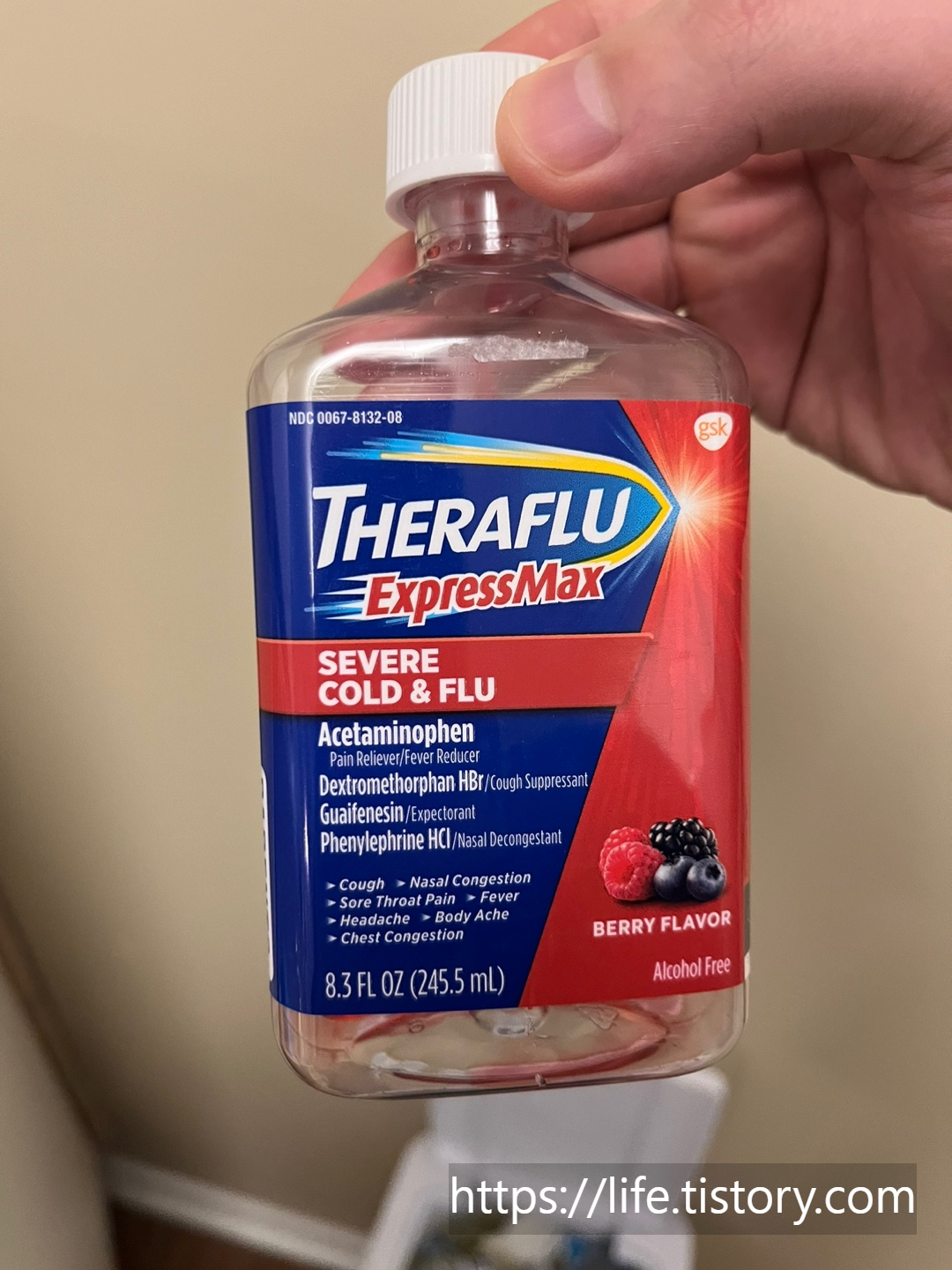 코로나확진 후 다음날은 기침과 몸살이 있었다. 확진 첫날에는 에드빌만 먹고 버텼는데 다음날은 몸이 무겁고 힘들어서 집에 있는 테라플루 리퀴드타입을 먹기 시작했다.