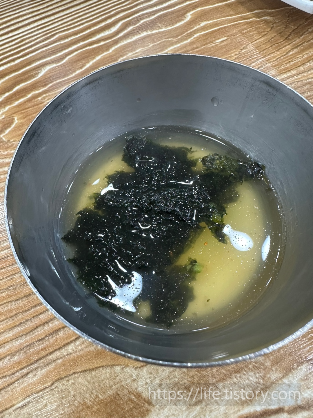 국밥을 맛있게 먹고 입가심으로 수란과 김을 잘 섞은 후 먹으면 아주 맛있다!!