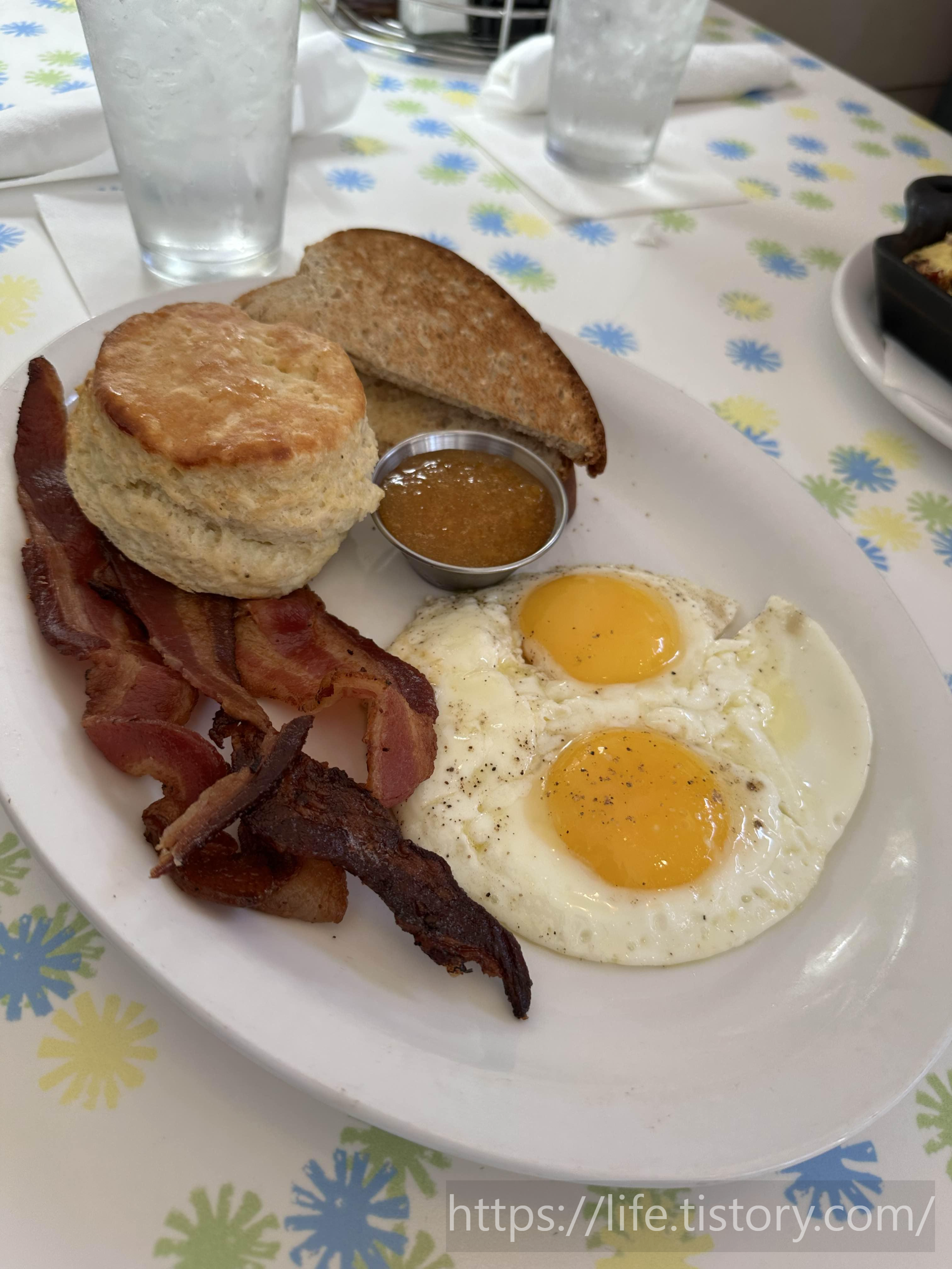 My husband ordered the breakfast plate, which came with the option to add two eggs and a side.