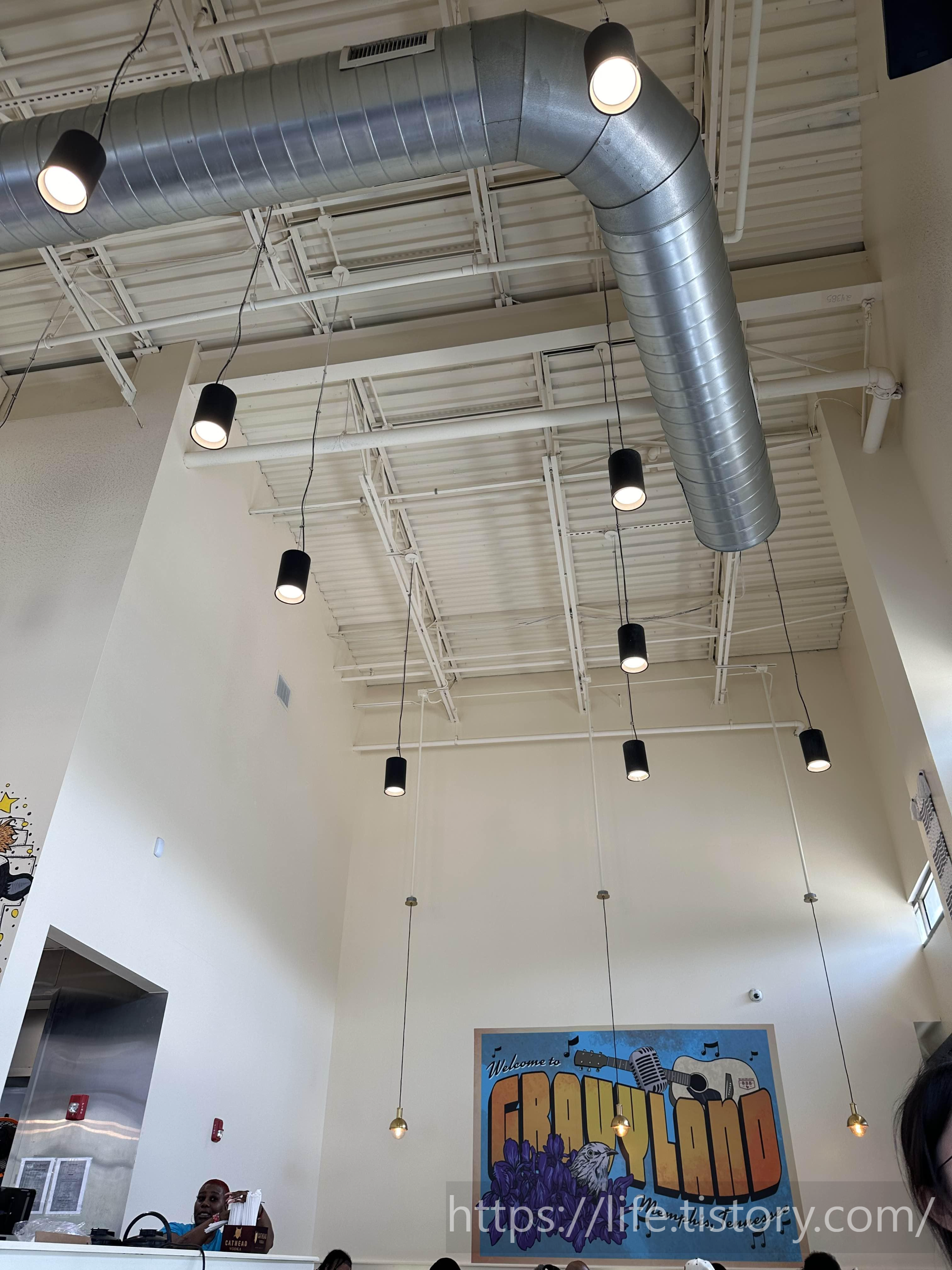 층고가 아주 높아서 협소한 테이블 공간에 비해 넓게 느껴졌다.