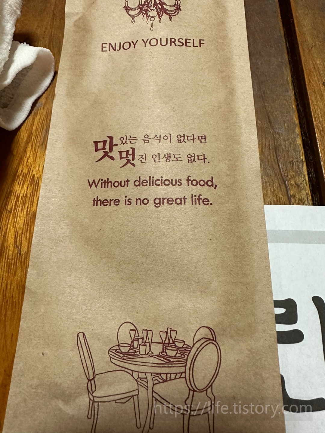정말 맛있는 음식을 좋아하는 나로서는 너무나 마음에 드는 글귀였다.
