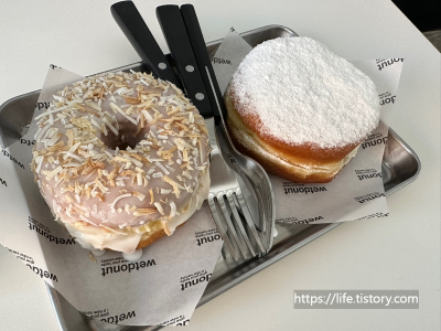 맛있는 건 크게 보자! 맛있었던 도넛들 배불러서 다 먹지도 못했다. 코코넛 무슨 도넛하고 둘 다 아주 맛있어서, 네 개 포장해서 남편 하고 도련님 어머님 맛보시라고 했다. 도넛 아주 촉촉 달달 맛나고 커피도 고소하고 맛있었다.
